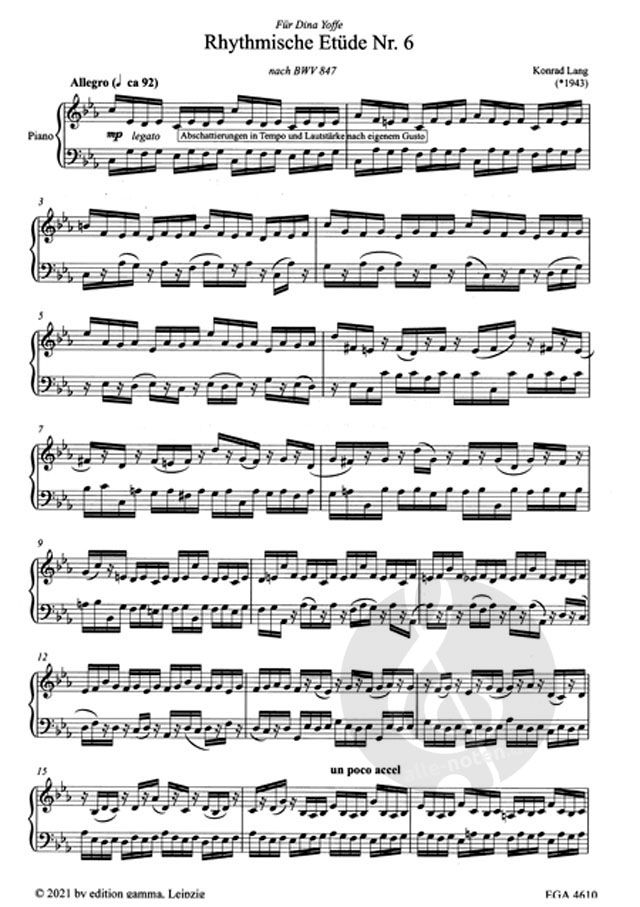 Die Rhythmische Etüde Nr. 6 gehört zu einer Sammlung von Etüden, von denen bislang vier erschienen sind (Edition Gamma EGA 220); sie wird fallweise fortgesetzt. Der unendliche Reichtum Bach'scher Musi...