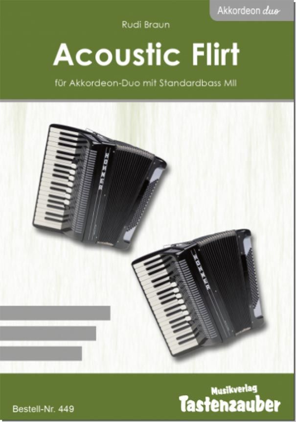 Acoustic Flirt ist eine Suite in 3 Sätzen für Akkordeon Duo mit Standardbass von Rudi Braun. Diese Suite gibt es bereits als Ausgabe für Akkordeon und Klavier und als Ausgabe für Akkordeon und Cello.