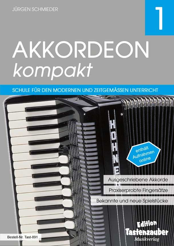Akkordeonschule für den modernen und zeitgemäßen Unterricht von Jürgen Schmieder mit ausgeschriebenen Akkorden, bekannten und neuen Spielstücken sowie praxiserprobten Fingersätzen. Das Schulwerk wurde überarbeitet und enthält nun Online-Audios.