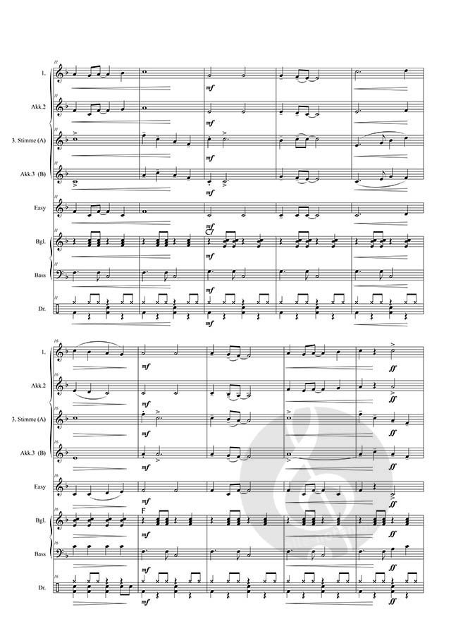 Im Stimmensatz enthalten: 4-mal Akkordeon 1 4-mal Akkordeon 2 3-mal Akkordeon 3 (A) 3-mal Akkordeon 3 (B) 2-mal Begleitung 2-mal Bass 4-mal Easy 1-mal Drums