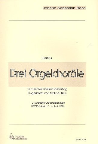 1. Der Tag, der ist so freudenreich (BWV 719) 2. Ach, Gott und Herr (BWV 714) 3. Ach Gott, tu dich erbarmen (BWV 1109) Die drei Orgelchoräle aus der Neumeister-Sammlung sind besonders für Kirchenkonzerte geeignet. Spielbar für Orchester und Ensemble gleichermassen. Akkordeon-Orchester