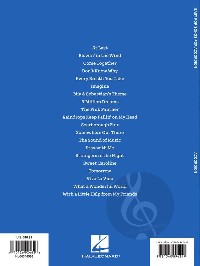 20 bekannte Titel für Akkordion solo, mit At Last, Imagine, A Million Dreams und River Flows in You. Diese Ausgabe enthält Akkordion Noten und Texte.