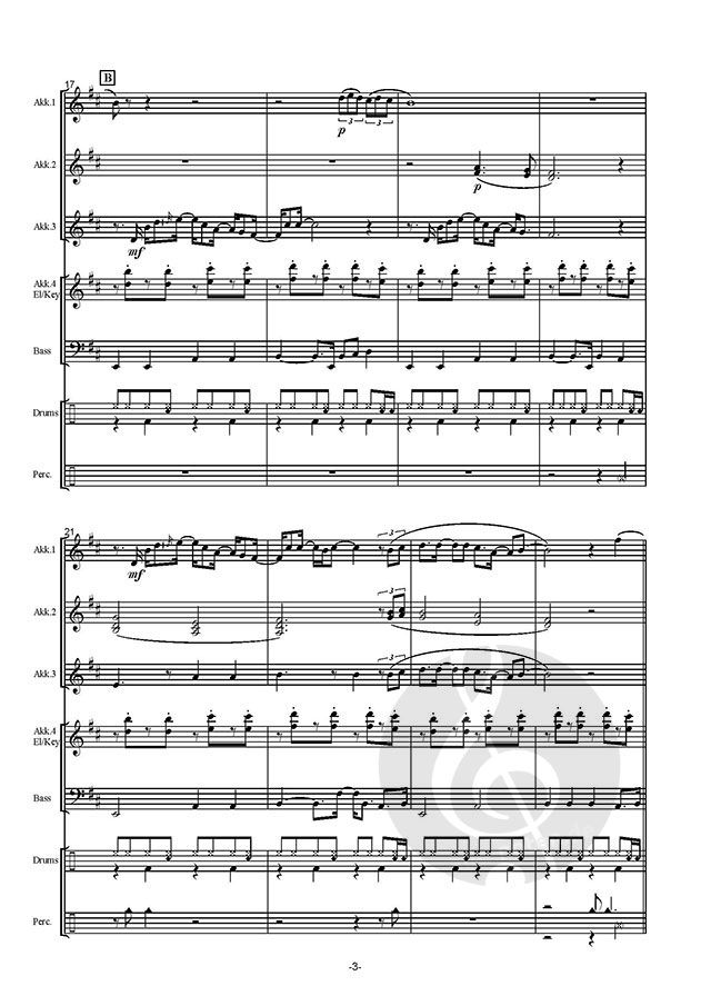 Besetzung: Akkordeon 1, 2, 3, 4, Elektronium/Keyboard ad lib., Bass, Drums, Percussion
