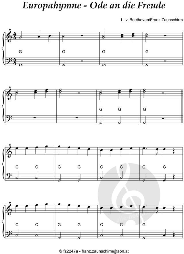 Dieses Arrangement der berühmten Beethoven-Melodie Ode an die Freude ist sehr einfach gehalten.