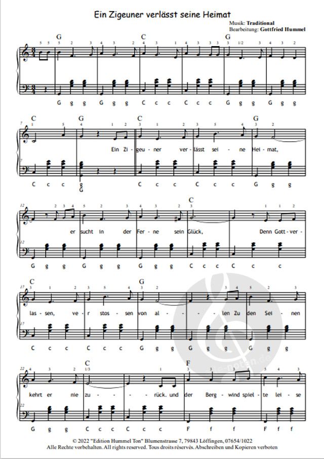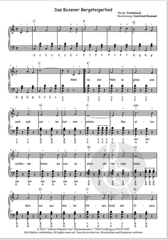 Bearbeitet für Akkordeon oder Keyboard von Gottfried Hummel