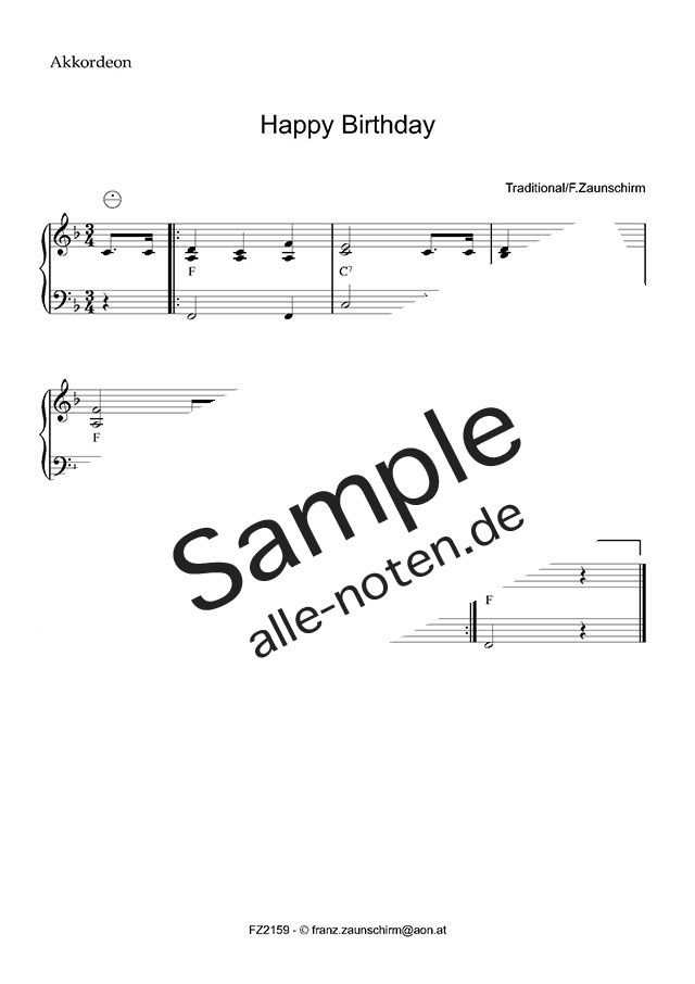 Das bekannteste Geburtstagslied steht für Akkordeon in einer gut spielbaren Tonart: die rechte Hand kann auch eine Oktave höher gespielt werden. Zu den Noten erhalten Sie zusätzlich eine mp3-Datei mit Playback der Melodie.