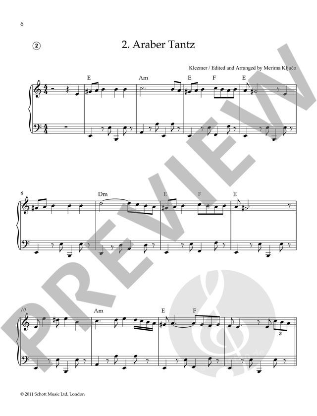 Klezmer and Sephardic Tunes präsentiert 33 wunderschöne Stücke, die von bekannten traditionellen bis zu neu komponierten Weisen reichen. Die Sammlung eignet sich hervorragend für alle, die sich eingehender mit Klezmermusik sowie mit der weniger bekannten Musik der sephardischen Juden beschäftigen möchten - im Rückgriff auf die kulturellen Wurzeln im Spanien des Mittelalters und dem Balkan. Die Ausgabe enthält Anmerkungen zu allen Stücken und zur allgemeinen Interpretation sowie MP3-Dateien mit allen Stücken in einer Einspielung von Merima Kljuco zum Download. Deutsche und französische Übersetzungen aller Texte sind als freie PDF-Downloads auf der Website von Schott Music erhältlich.
