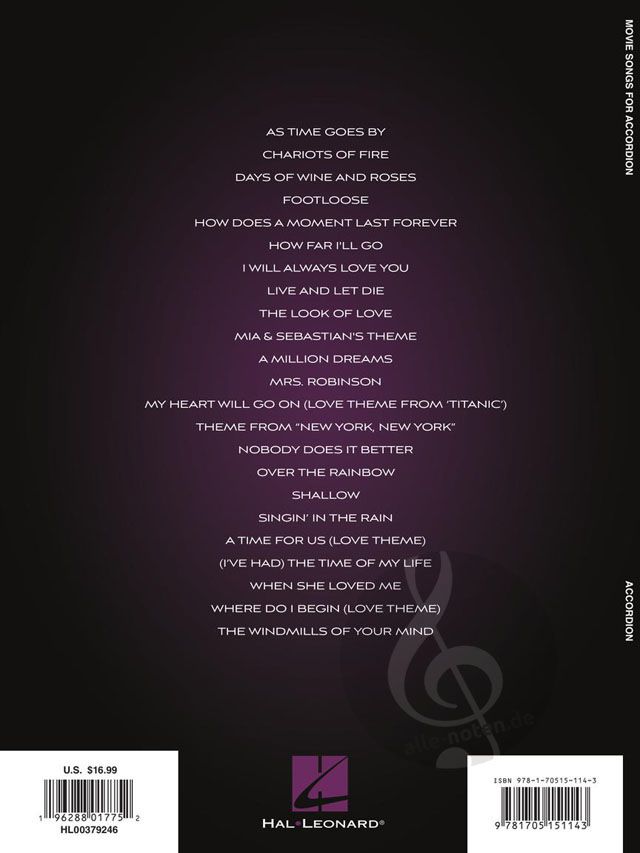 Dieser großartige Sammelband präsentiert Ihnen 23 legendäre Filmsongs für Akkordeon.