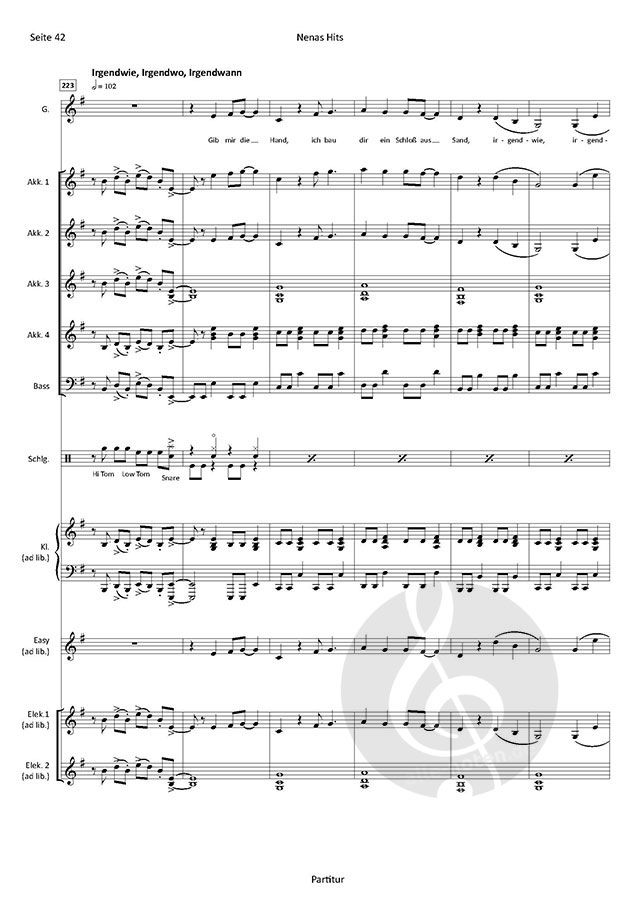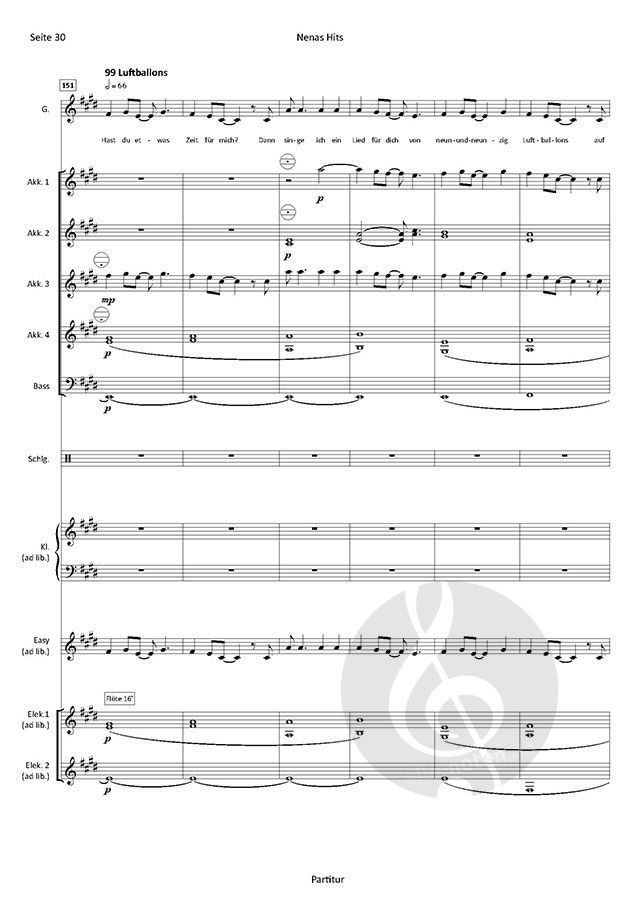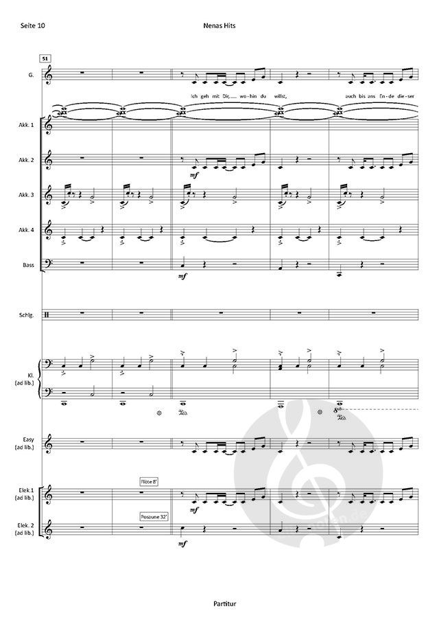 Besetzung: Akkordeon 1-4, Bass, Schlagzeug, Klavier (ad lib.), Gesang (ad lib.), Easy-Stimme (ad lib.), Elektronium 1 / 2 (ad lib.)