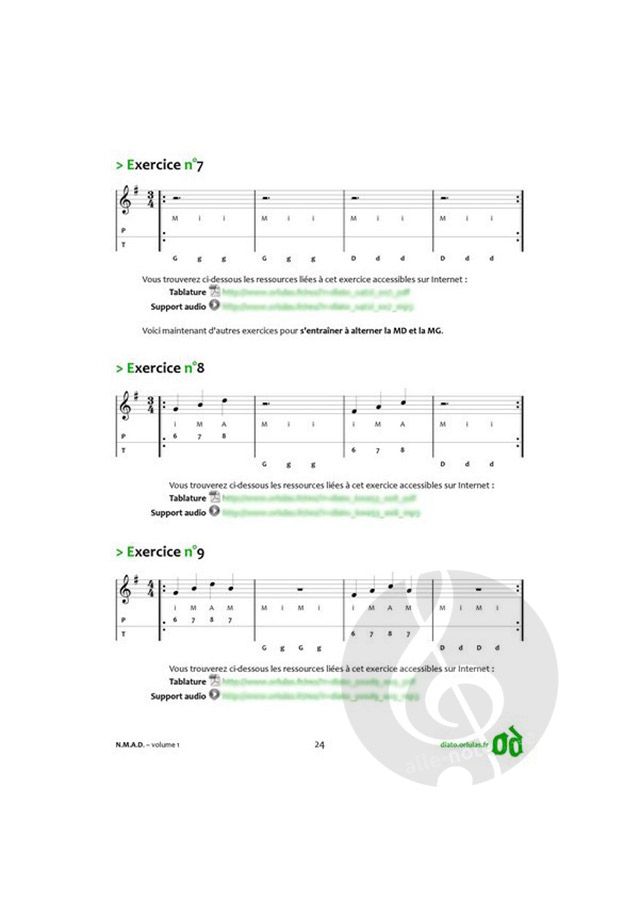 Rédigée pendant l'été 2014 et soigneusement peaufinée durant une année entière, cette Nouvelle Méthode d'apprentissage instrumentale pour Accordéon Diatonique (appelée N.M.A.D.) en Sol/Do avec 2rangées/8basses est la plus récente publiée à ce jour. Le premier volume de cette méthode propose aux débutants d'apprendre à jouer d'une manière innovante à travers une amélioration du schéma de clavier standard européen et par la prise en compte de plusieurs notions jusqu'alors réservées aux Accordéons Chromatiques : articulation des doigts, phrasé, respirations, nuances et logique de doigtés à cinq doigts main droite seront notamment abordés dans ce livret !