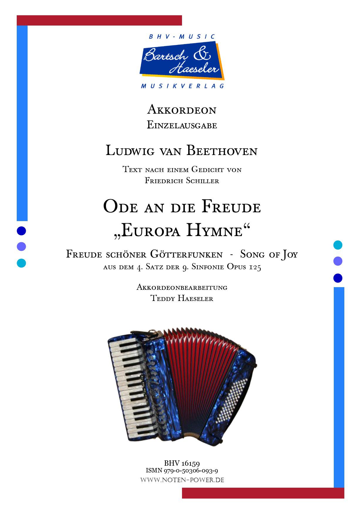 Akkordeon Einzelausgabe mit Text, (2. Stimme ad lib.); Freude schöner Götterfunken, (Song of Joy) a. d. 4. Satz der 9. Sinfonie Op. 125