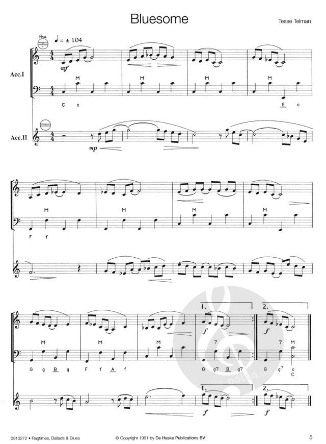 Die steigende Nachfrage nach Kompositionen für ein oder zwei Akkordeons war der Anlass für Tesse Telman, dieses Album mit elf swingenden Stücken zu schreiben. Diese können alleine aufgeführt werden, klingen jedoch mit der zusätzlichen Stimme noch interessanter!