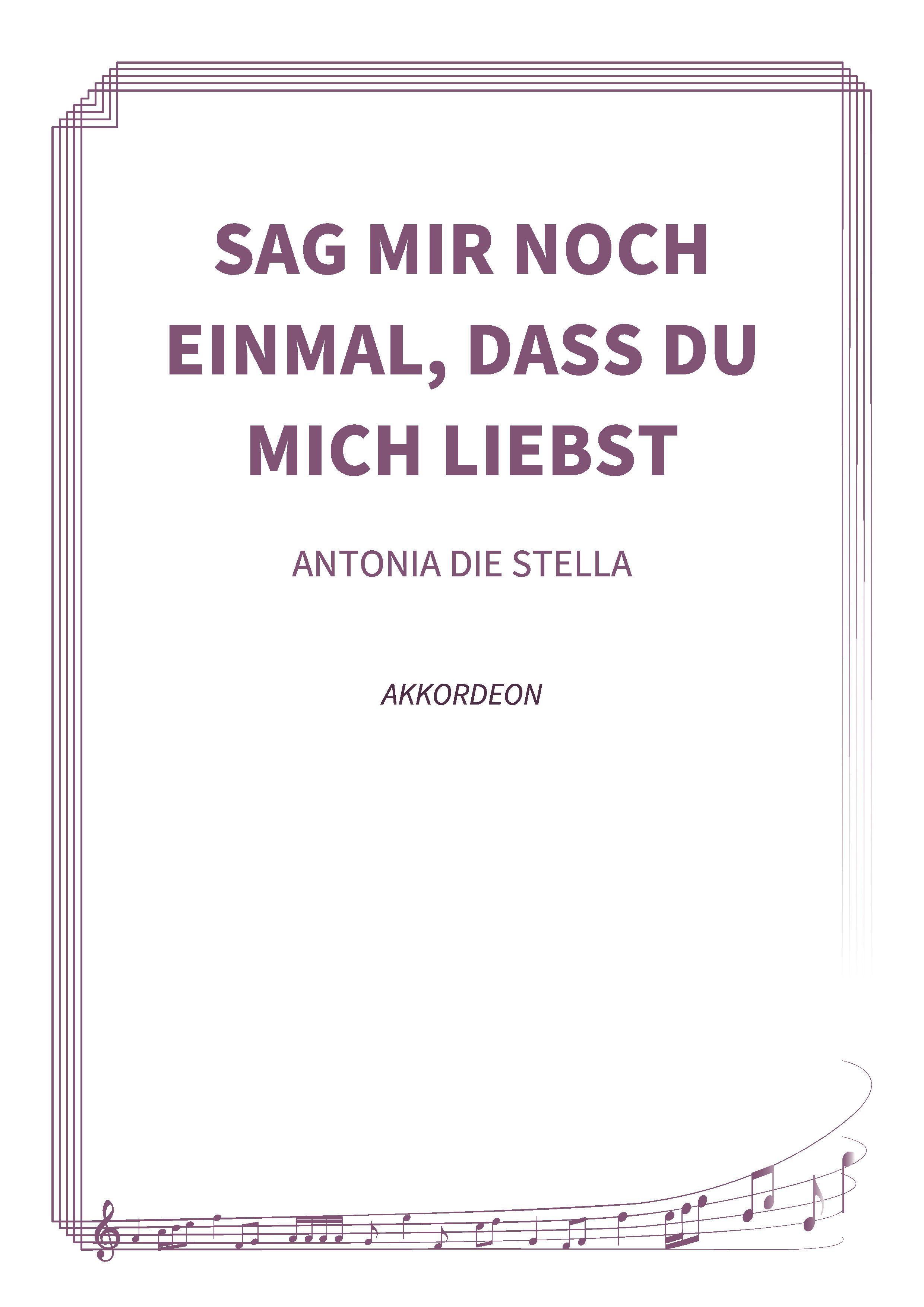 Dies ist die Notenausgabe des Stücks "Sag mir noch einmal, dass du mich liebst" von Antonia die Stella, arrangiert für Akkordeon in G-Dur im 3/4-Takt.