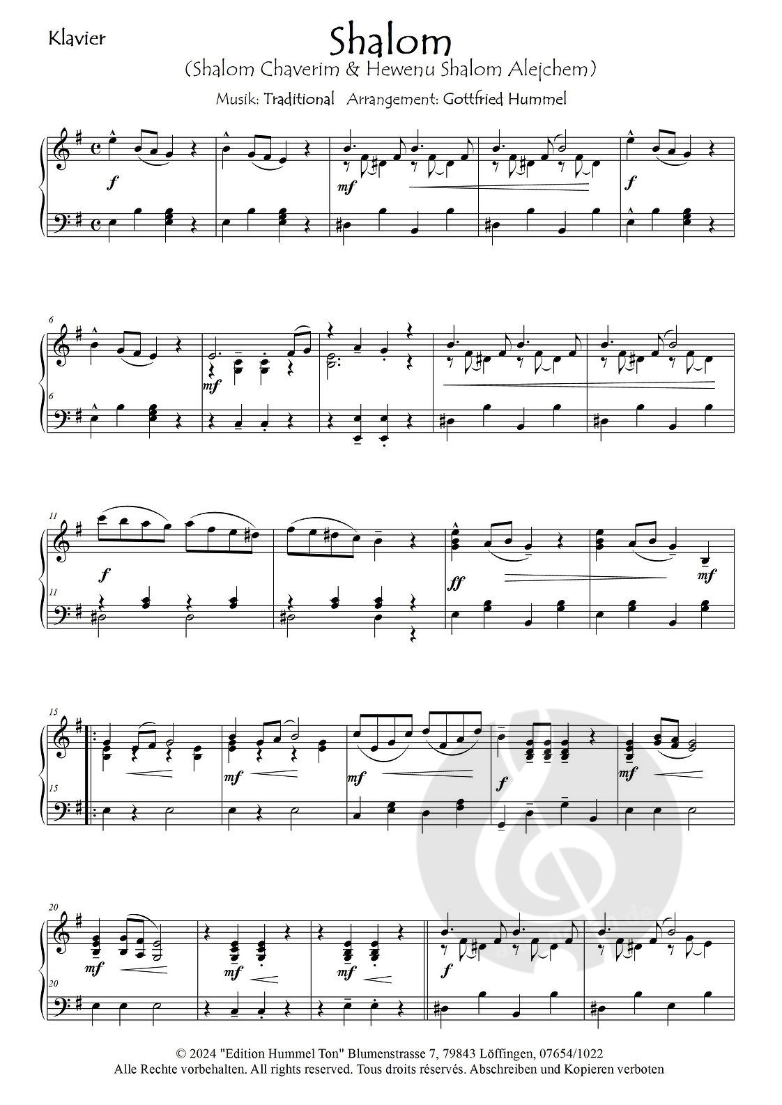 mit einer ad. lib, Zusatzstimme für Klavier, arrangiert.