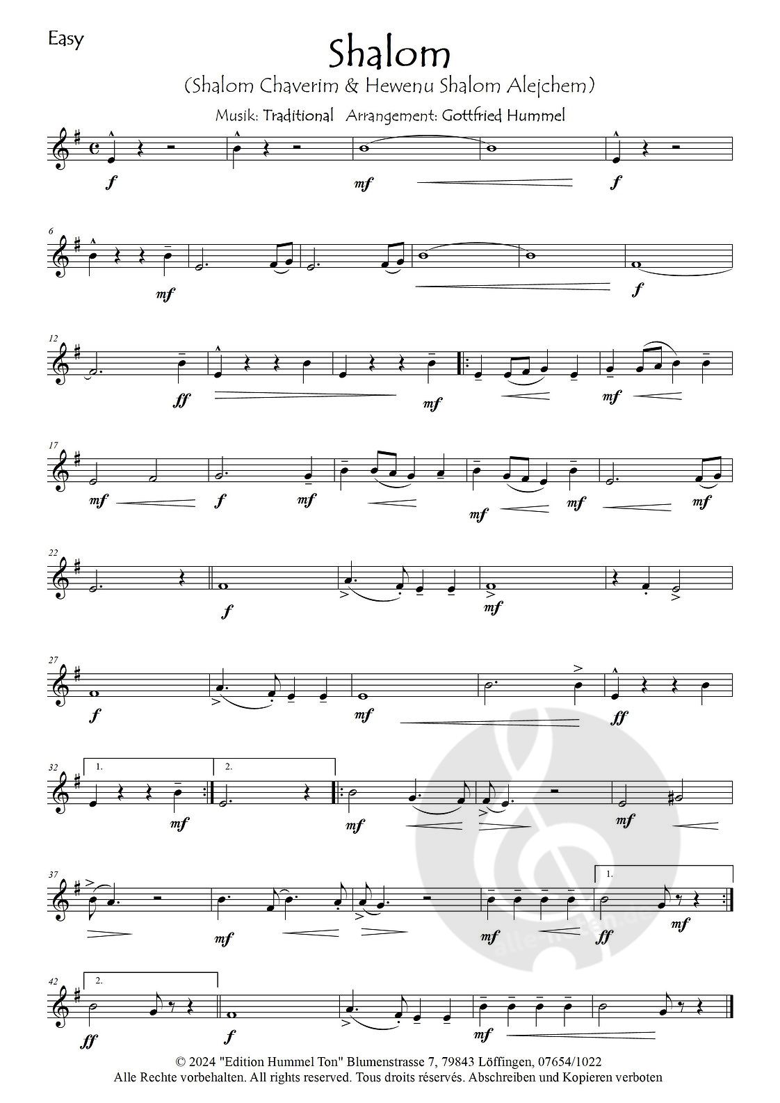 Eine Solostimme (Gesang), die beliebten Easy-Stimmen und Pauken ergänzen den Stimmensatz