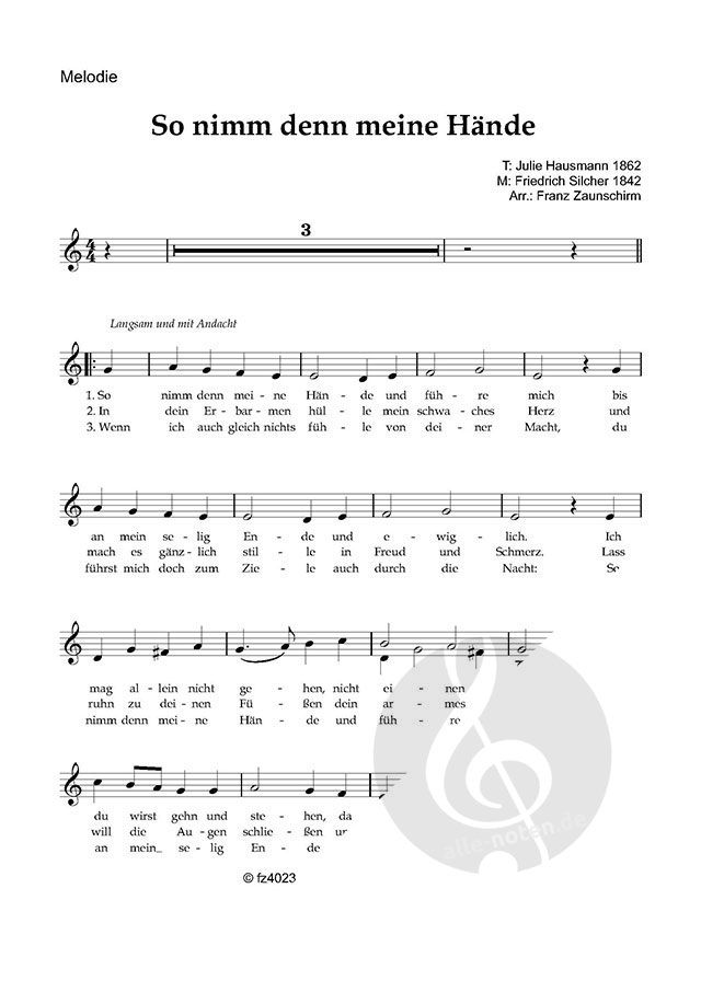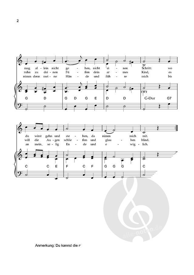 Diese einfache Melodie gehört zu den beliebtesten Vortragsstücken zu religiösen Feiern. Die Melodie hat Friedrich Silcher komponiert. Sie wird mit einer zweiten Stimme in der rechten Hand einfach unterstützt. Der Bass spielt dazu einzelne Töne, keine Akkorde.