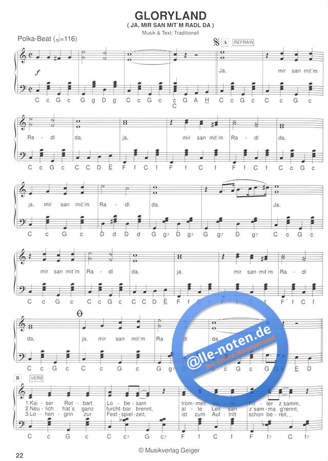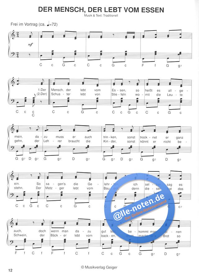 - Noten (Melodie, Text und Akkorde)