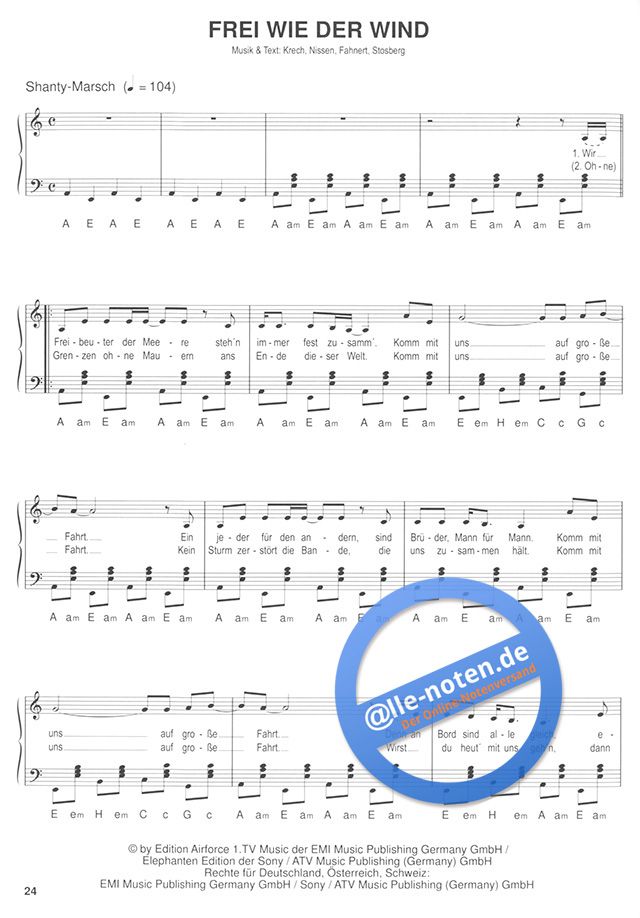 - Noten (Melodie, Text und Akkorde)