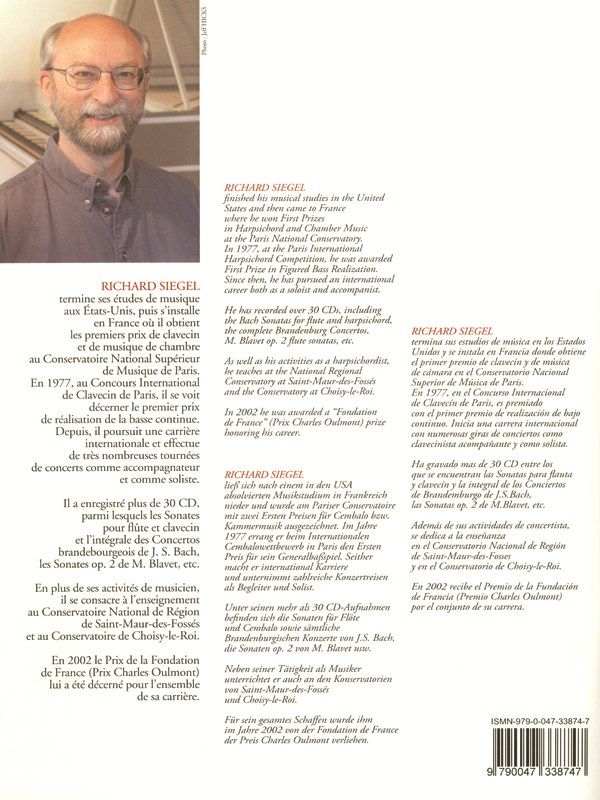 Richard Siegel won prizes for the Harpsichord and Chamber Music at the Paris Conservatoire before going on the win first prize in the 1977 International Harpsichord Competition. He has since recorded over 30 CDs and his passionfor the instrument has been further apparent in his production of Apprendre Toucher le Clavecin. As stated in the preface, the study of the Harpsichord has long been reserved, frequently dismissed as an 'old-fashioned'instrument. However, a recent rise in the popularity of early music has rekindled interest in the Harpsichord. In Apprendre Toucher le Clavecin, volume 1 being the first of two helpful volumes to aid student's learning andprogression, Siegel enables Harpsichord beginners to learn through repertoire pieces themselves, drawn from the Keyboard masters of the Baroque period. The pupil will be guided towards an understanding of technique and stylesuited to the Harpsichord. Furthermore, Apprendre Toucher le Clavecin, which is accompanied by a CD, enables adults who learnt the instrument as a child to return to the instrument and have the instant feeling of making music.