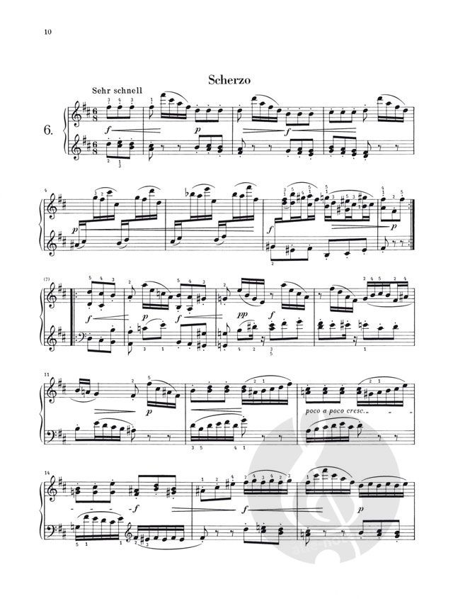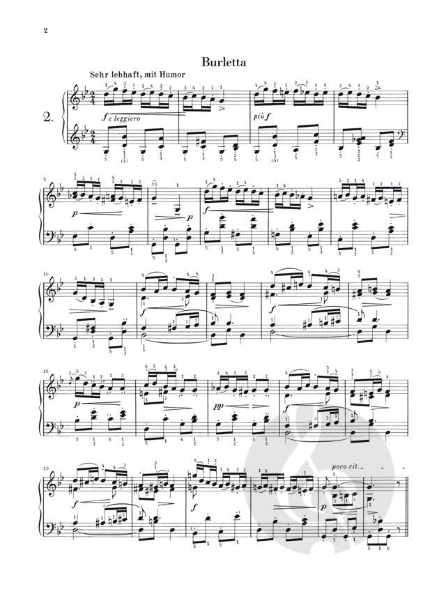 In seinen zahlreichen Sammlungen kleiner Charakterstücke entwickelte der ideenreiche Max Reger im Schatten der Romantiker-Epigonen peu à peu seinen Originalstil mit modulierender Harmonik bei gleichzeitigen Rückgriffen auf die klassische Formensprache. So lohnt es sich außerordentlich, sich mit den 'Zehn kleinen Vortragsstücken' op. 44 von 1899 zu beschäftigen, die eine erstaunliche harmonische Kühnheit aufweisen. Zehn kurze, mittelschwere Vortragsstücke mit Titeln wie 'Albumblatt', 'Burletta', 'Es war einmal' oder einfach nur 'Capriccio' reihen sich aneinander und führen den Pianisten an Regers Klavierwerk heran. Die originalen Fingersätze des Komponisten machen diese sorgfältig edierte Urtextausgabe besonders interessant.