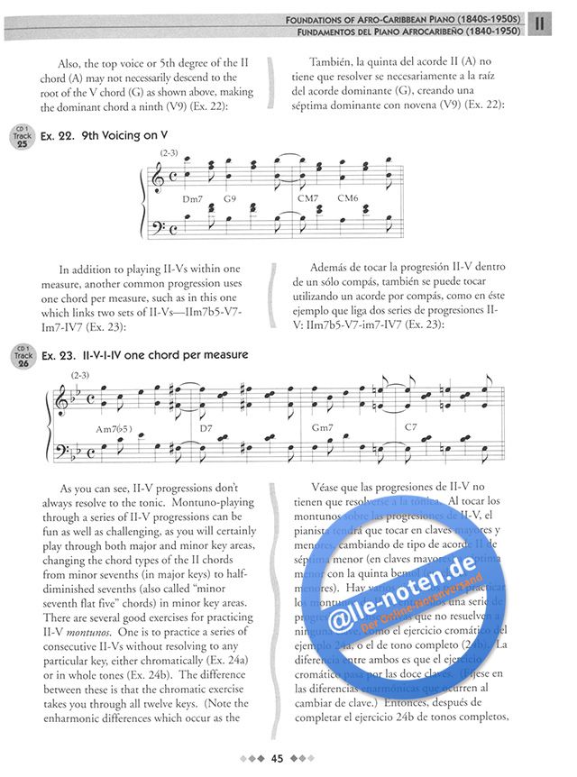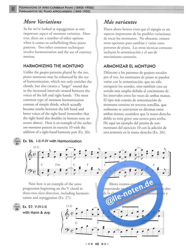 101 Montunos mit verschiedenen Akkordverbindungen in den Stilen der afro-kubanischen Musik, z.T. mit Bass-Figuren, mit 2 CD's