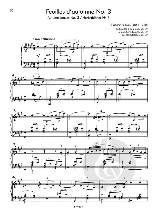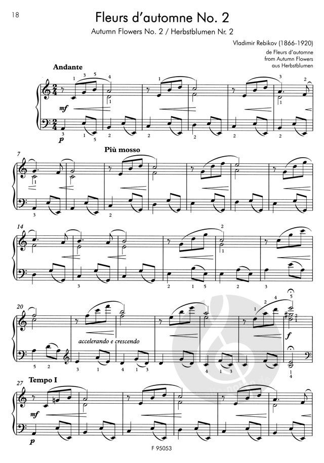 Rebikov ist ein interessanter, jedoch beinahe in Vergessenheit geratener russischer Komponist des 20. Jahrhunderts. Seine Werke werden vom Verlag Rob. Forberg nach und nach wieder aufgelegt. Die in diesem Band enthaltenen 15 Stücke sind von leichtem bis mittlerem Schwierigkeitsgrad und für Klavierschüler bestens geeignet. Die neue Ausgabe enthält geschichtliche, musikalische und für die richtige Darbietung relevante Anmerkungen zu den Stücken.
