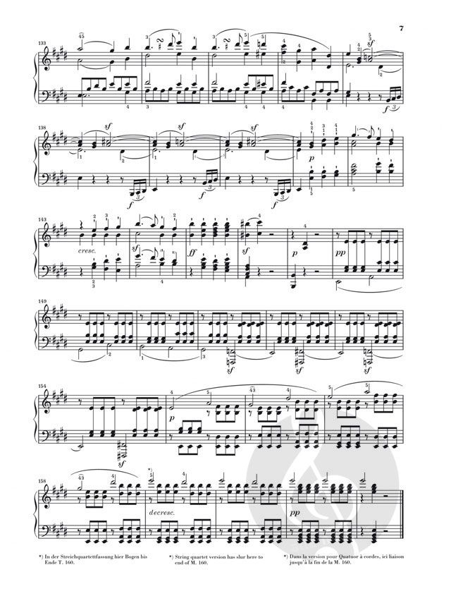Eine einzige seiner Klaviersonaten bearbeitete Beethoven für eine alternative Besetzung: Von der Sonate op. 14 Nr. 1 existiert eine eigenhändige Übertragung für Streichquartett (sie ist im Anhang unserer Ausgabe der Streichquartette op. 18, HN139/9139, wiedergegeben). Mit diesem Arrangement wollte sich Beethoven ausdrücklich vor fremden Bearbeitungen schützen. Umso mehr Sorgfalt verwandte er auf diese Arbeit; so versah er sie z. B. mit minutiösen Angaben zu Dynamik und Artikulation. Der renommierte Pianist Murray Perahia, der als Mitherausgeber für diese Neuedition der Beethoven-Sonaten gewonnen werden konnte, berücksichtigt bei der Revision auch diese Quelle und steuert darüber hinaus eigene Fingersätze bei.