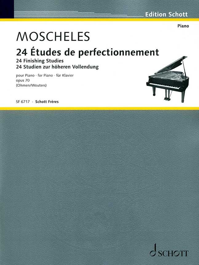 Ignaz Moscheles' (1794-1870) 'Studien für das Pianoforte, zur höheren Vollendung bereits ausgebildeter Klavierspieler, bestehend aus 24 charakteristischen Tonstücken, op. 70', 1827 veröffentlicht, gehören zu den besten Etüden der damaligen Zeit und behandeln in allen Tonarten, meist abwechselnd in Dur und in Moll, die verschiedensten pianistischen Spielfiguren.