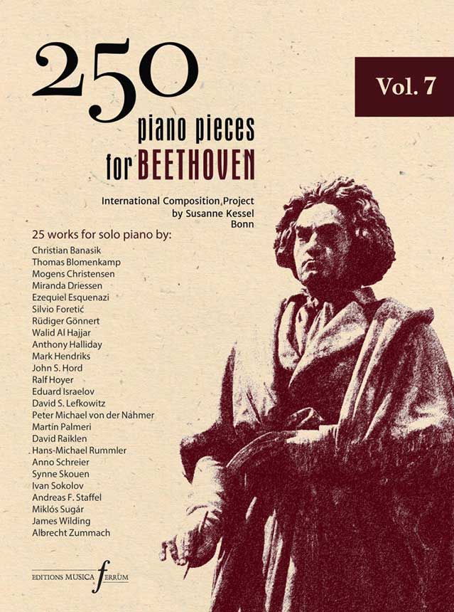 The seventh volume of the '250 piano pieces for Beethoven' project, initiated and organised by Susanne Kessel, in Bonn. Containing 25 out of the 250 total works to be composed for this project and offering a new view on the works, the life and the philosophy of Ludwig van Beethoven, this 192 page score is a monumental seventh volume to inspire and offer back to the audience. Preface and explanation of the project in English and German. Essay and analytical notes on each work by Prof. Rainer Nonnenmann in English and German. Biographies and program notes by the composers in English.