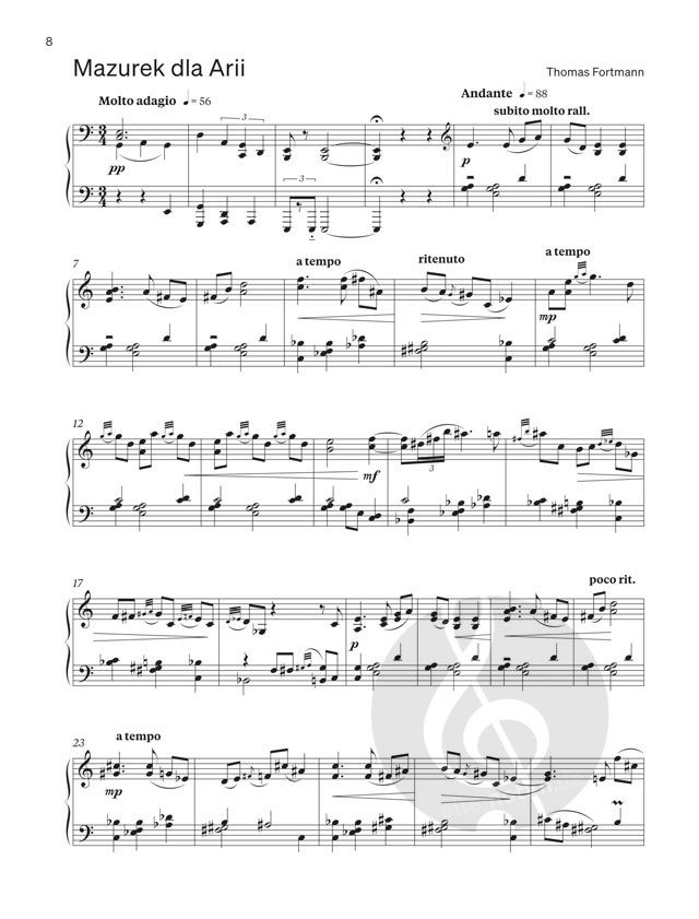 Die drei Mazurkas Mazurek dla Anny, Mazurek dla Arii und Mazurek dla Arianki wurden von Anna Kanowska und der Universität Schlesien in Auftrag gegeben und 2023 in Rio de Janeiro uraufgeführt.