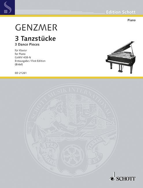 Der Hindemith-Schüler Harald Genzmer (1909-2007) hat sich praktisch mit allen Musikgattungen beschäftigt und für viele, auch ausgefallene Instrumente (wie beispielsweise für das Trautonium) Werke geschrieben. Natürlich hat er auch das Klavier bedacht und schon 1938 mit der 1. Sonate ein wichtiges Opus veröffentlicht. Dem seit 1945 in Mannheim tätigen Richards Laugs, der zunächst Kapellmeister am Nationaltheater, dann Direktor an der dortigen Musikhochschule war, schrieb er '3 Tänze' für Klavier, deren Autograph erst jüngst im Nachlass der Witwe Laugs aufgetaucht ist. Diese sehr spiel- und klangfreudigen Miniaturen werden hier erstmals veröffentlicht.