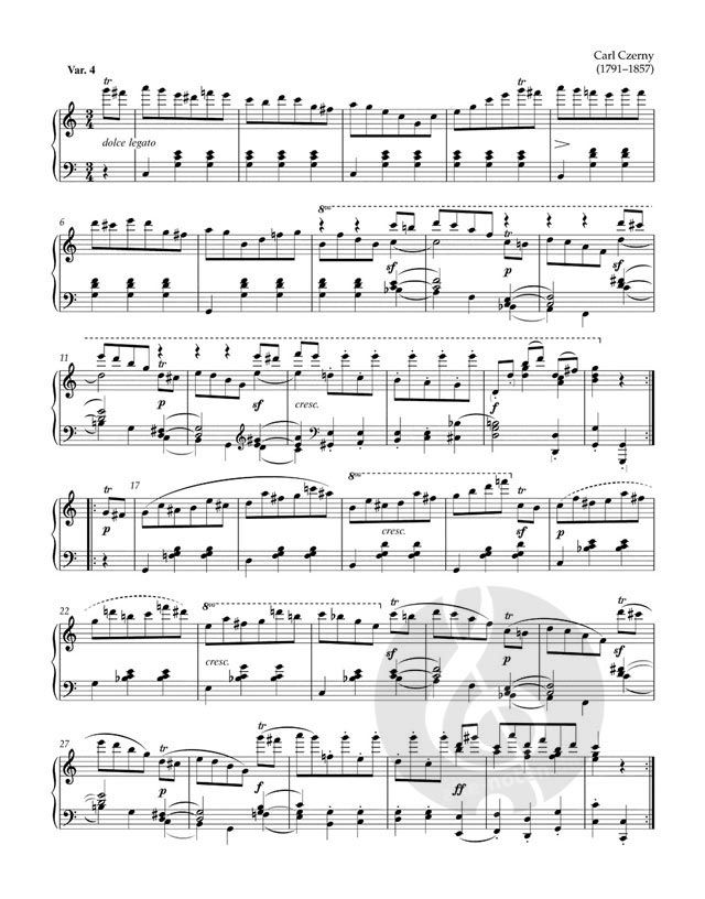 Beethovens 1819-1823 entstandene 'Diabelli-Variationen' markieren den Gipfel seines Variationenschaffens und gehören wie Bachs 'Goldberg-Variationen' zu den bedeutendsten Beiträgen dieser Kunstform. Neben Beethoven waren 50 weitere österreichische, vor allem Wiener Komponisten dem Aufruf Diabellis gefolgt, seinen eingängigen Walzer zu variieren, darunter Czerny, Moscheles, Fr. X. Mozart, Schubert, der elfjährige Liszt und Joh. N. Hummel.