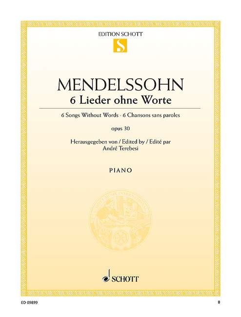 Zu den populärsten Kompositionen Mendelssohns gehören seine lyrischen Klavierstücke 'Lieder ohne Worte'. Über 25 Jahre hinweg veröffentliche Mendelssohn seine sanglichen Melodien in insgesamt 8 Heften, bestehend aus 6 Stücken. Dementsprechend erscheinen die Werkgruppen nun auch bei der Edition Schott in Einzelausgaben.
