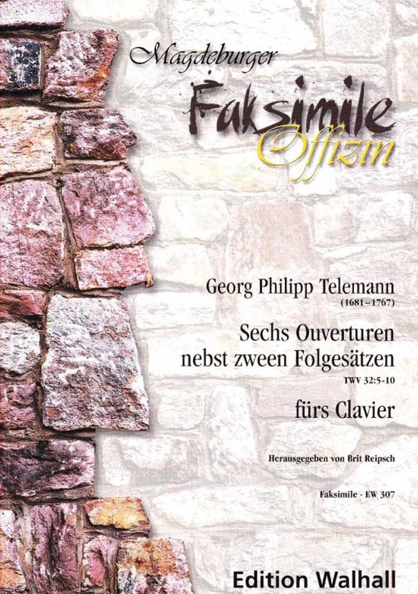 Für Clavier, als Faksimile herausgegeben von Brit Reipsch. Von den Liebhabern der historischen Aufführungspraxis lange erwartet, ist dieses zu Unrecht wenig gespielte Cembalowerk nach dem Nürnberger Druck von Balthasar Schmid (ca. 1745) als Reprint erschienen: Telemann zeigt auch hier seine Klasse als Komponist. Die Ouverturen bereichern als Cembalobeitrag ein Telemannkonzert. Magdeburger Faksimile Offizin