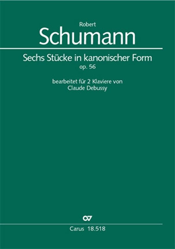 Mit Robert Schumanns Studien für den Pedalflügel op. 56 ist ein interessantes, ausgewogenes und ausgesprochen wohlklingendes Werk überliefert, welches allerdings für einen Klaviertyp geschrieben wurde, der sich nie richtig durchzusetzen vermochte. Claude Debussy hat mit seiner Bearbeitung für zwei Klaviere einen Geniestreich begangen, indem er das Werk in einer Version mit einfachen Stimmenverdopplungen oder -reduktionen präsentiert und durch den Einsatz zweier Instrumente die kanonische Form stereophon erklingen lässt. Dadurch wird die Komposition künstlerisch bereichert und der Konzertaufführung zugänglich gemacht. Überdies bietet sich die einzigartige pädagogische Möglichkeit, Phrasierung und Ausdruck durch Imitation - zum Beispiel zwischen Lehrer und Schüler - zu erforschen. Debussys Fassung liegt hier erstmals in einer korrigierten, mit Fingersätzen und einem informativen Textteil ausgestatteten Neuausgabe vor.