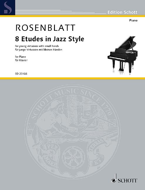Rosenblatts 8 Etüden im Jazz Stil sind das Ergebnis einer Kooperation mit dem Pianisten Michael Bischoffberger. Alle Stücke haben die technische Weiterentwicklung der jungen Pianisten im Blick, mit Skalen, Arpeggios, Doppelgriffe, Akkordtechnik, Kantilenen oder Pedal. Aber alle Stücke kommen ohne den Einsatz der Oktave aus, die Septime ist das größte Intervall. Obwohl die Werke für Kinder gedacht sind, haben sie dennoch einen 'erwachse-nen' und vollen Klang. Dies wird vor allem durch die Jazzstilistik möglich.