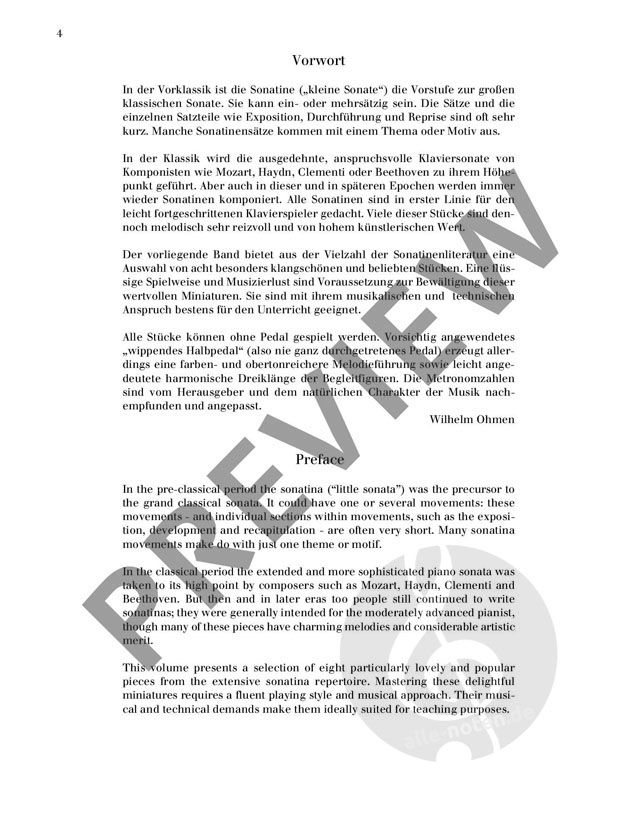 Die schönsten klassischen Sonatinen von Muzio Clementi, Thomas Attwood, Ludwig van Beethoven, Daniel Gottlob Türk, Christian Louis Heinrich Köhler, Domenico Cimarosa und Wolfgang Amadeus Mozart. Für den Unterricht und für Klavierliebhaber herausgegeben von Wilhelm Ohmen und Hans-Günter Heumann.