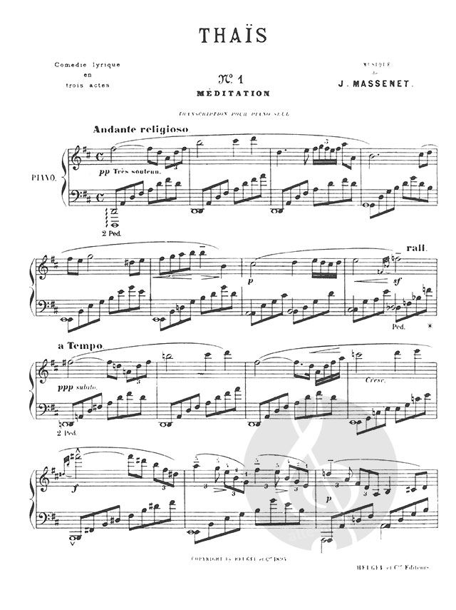 Massenet Jules Thais Meditation Piano Book