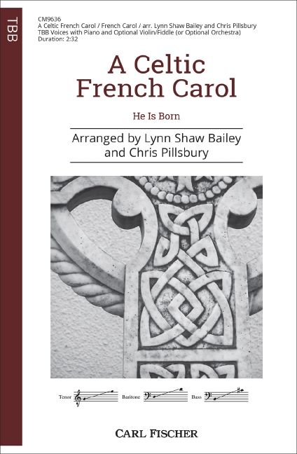 Delightfully fresh and fun, this Celtic-style arrangement of the beloved French carol He Is Born, is a lively Christmas anthem. Featuring a driving piano accompaniment and optional Celtic fiddle, it is the perfect piece for any occasion where spirited holiday music is desired. An additional string ensemble accompaniment is also available on demand (CM9503IN). Also available for SATB Voices (CM9503), Three-Part Mixed Voices (CM9641), and SSA Voices (CM9528).