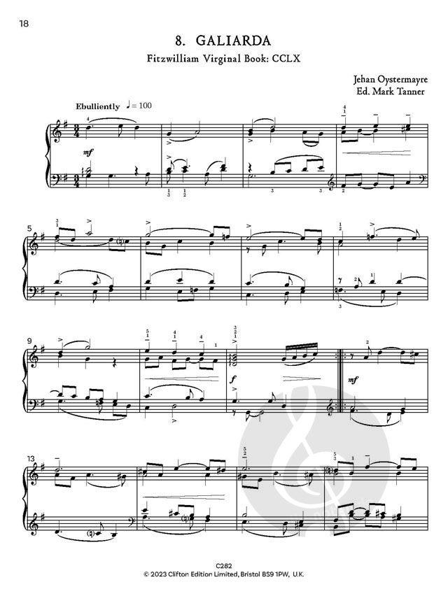 A Renaissance Keyboard Anthology, herausgegeben von Mark Tanner, ist in vier Bänden für alle 8 Klassenstufen erhältlich. C282 Band 3 Klassenstufen 6 - 7. Diese Anthologie mit sorgfältig bearbeiteten Stücken für Tasteninstrumente der Spätrenaissance stammt aus einem der wichtigsten historischen Manuskripte aller Zeiten: Das Fitzwilliam Virginal Book (ca. 1562-1612).