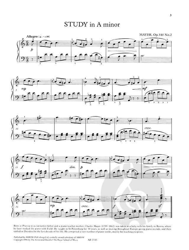 C. Mayer Study in A minor, Op. 340 No. 2