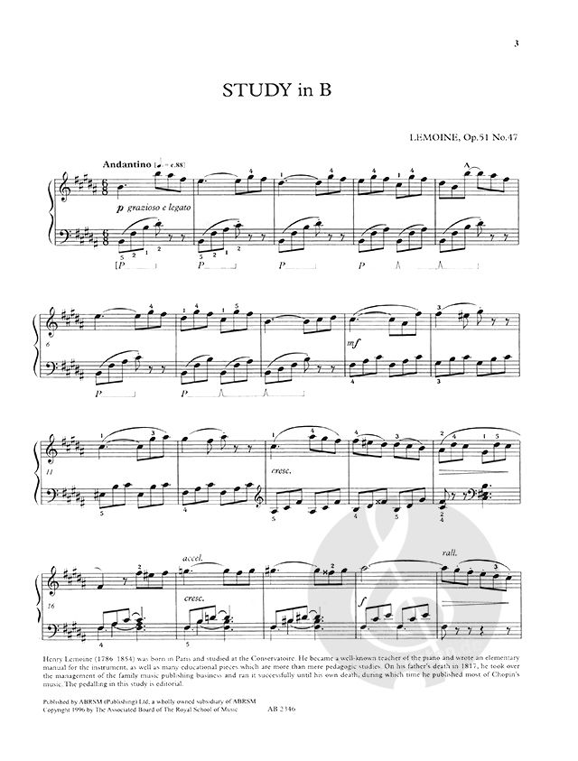 Henry Lemoine Study In B Op.51 No.47