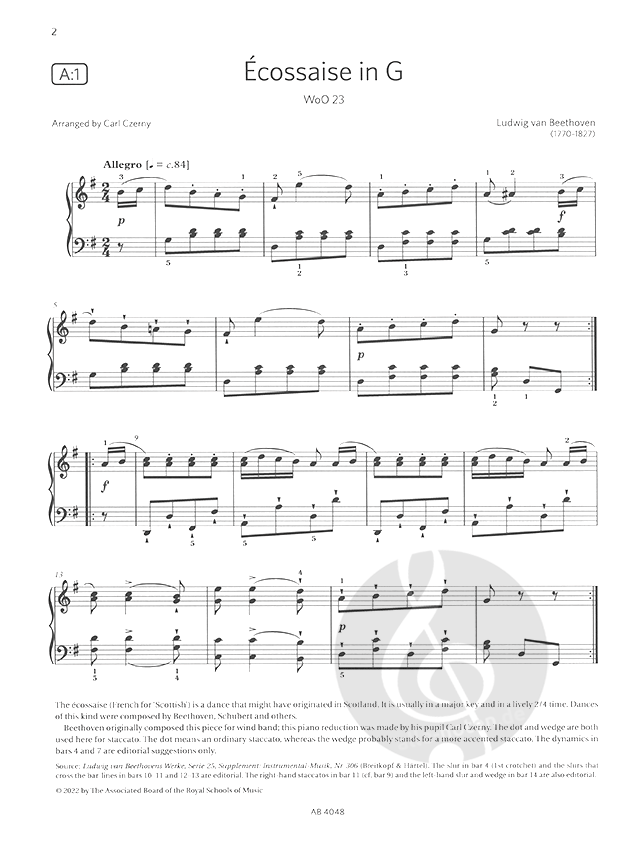 Ludwig van Beethoven Écossaise in G, WoO 23, arr. Czerny