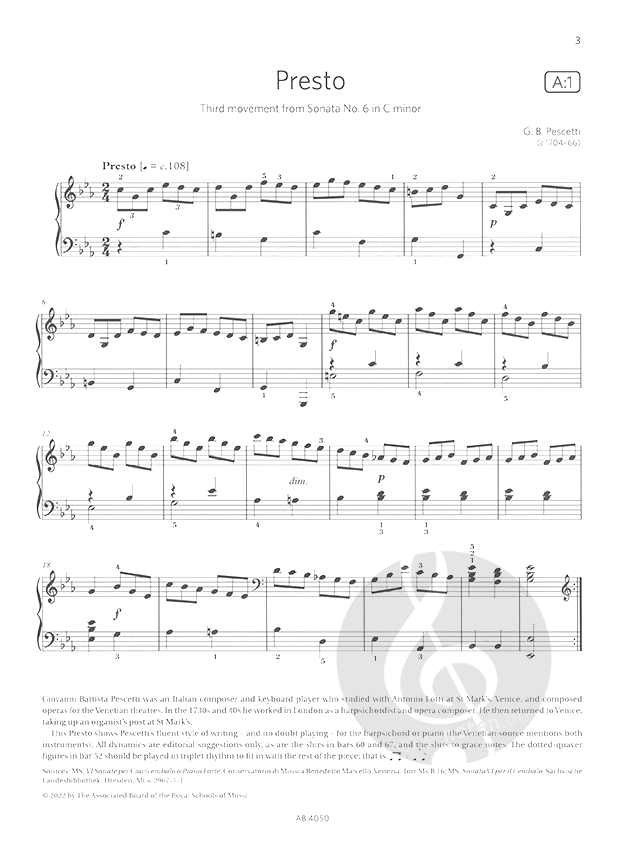 Giovanni Battista Pescetti Presto 3rd movt from Sonata No. 6 in C minor