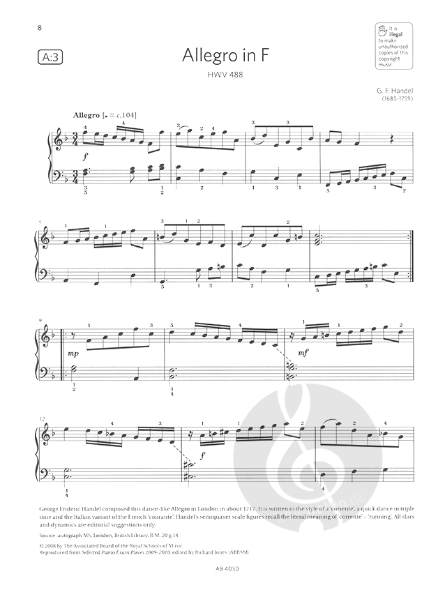 Georg Friedrich Händel Allegro in F, HWV 488