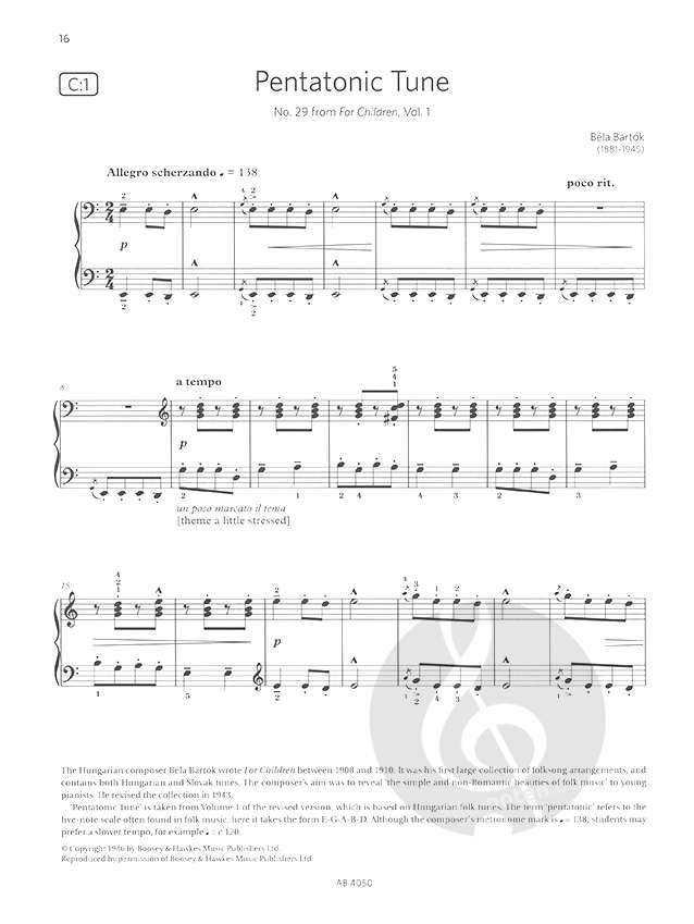 Béla Bartók Pentatonic Tune No. 29 from For Children, Vol. 1