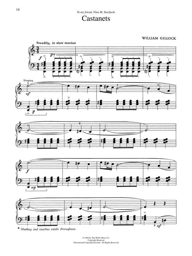 The original piano solos in these collections by William Gillock include material suitable for recital or contest events. The solos range in difficulty from beginning level pieces in Volume 1 up to late intermediate selections in Volume 8.