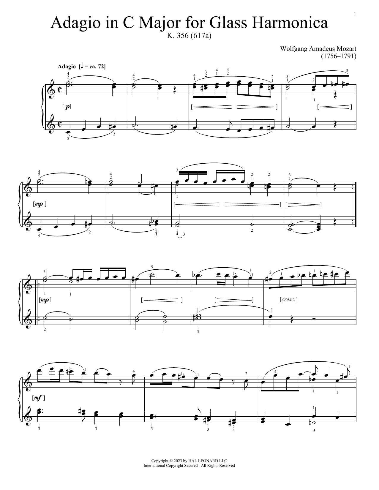 Adagio For Glass Harmonica, K. 356