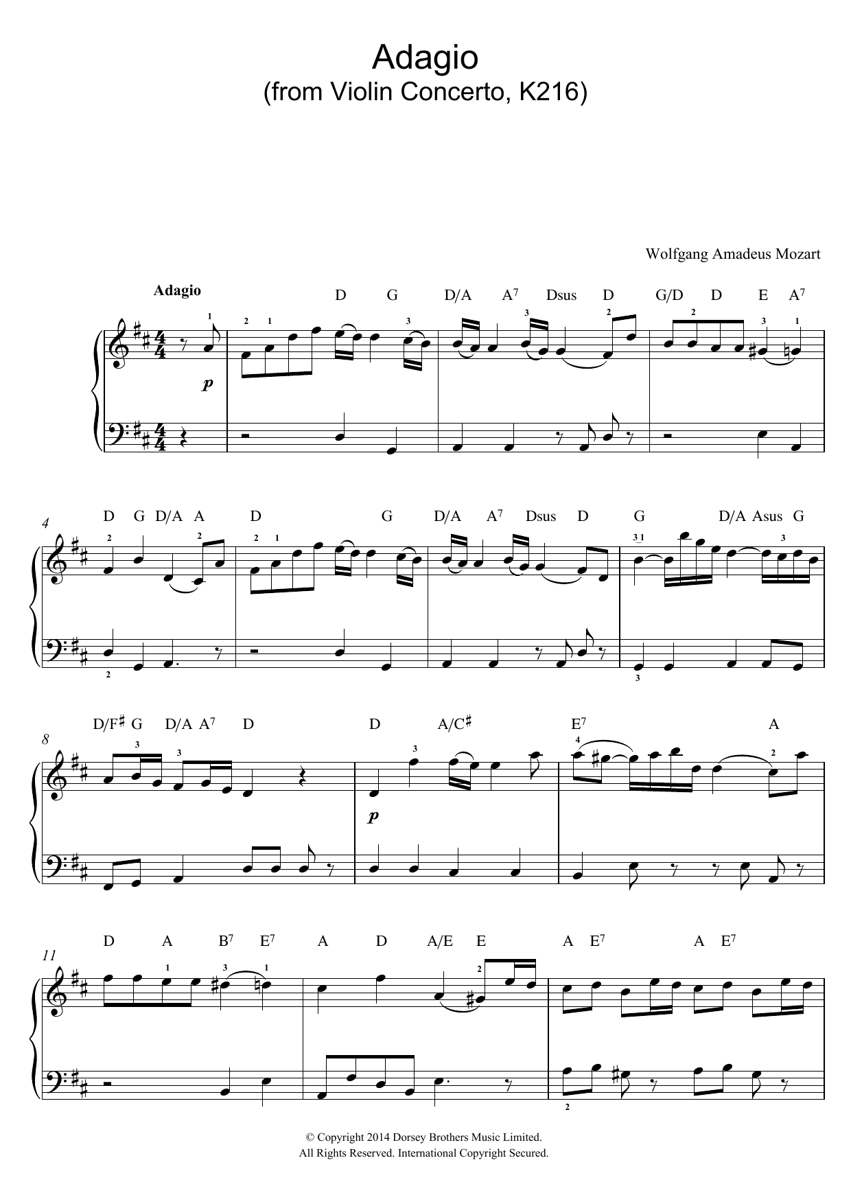 Adagio from Violin Concerto In G, K216