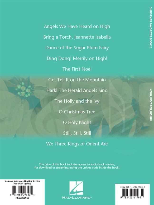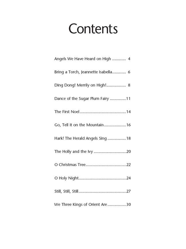 12 more holiday classics: Angels We Have Heard on High * Bring a Torch, Jeannette Isabella * Dance of the Sugar Plum Fairy * Ding Dong! Merrily on High! * The First Noel * Go, Tell It on the Mountain * Hark! The Herald Angels Sing * The Holly and the Ivy * O Christmas Tree * O Holy Night * Still, Still, Still * We Three Kings of Orient Are.